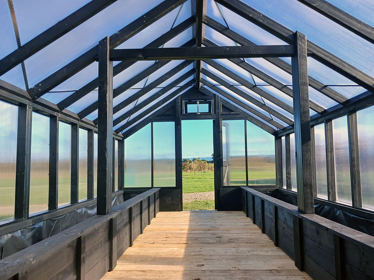 Every Nutopia greenhouse is built with a solid timber frame and polycarbonate cladding, designed to handle real New Zealand weather — from wind and rain to strong UV and coastal exposure. Built on strong, proven designs, our greenhouses come in a range of sizes with flexible layouts, optional features and colour finishes, allowing you to choose a setup that suits your site, how you want to use it, and makes it uniquely yours.
