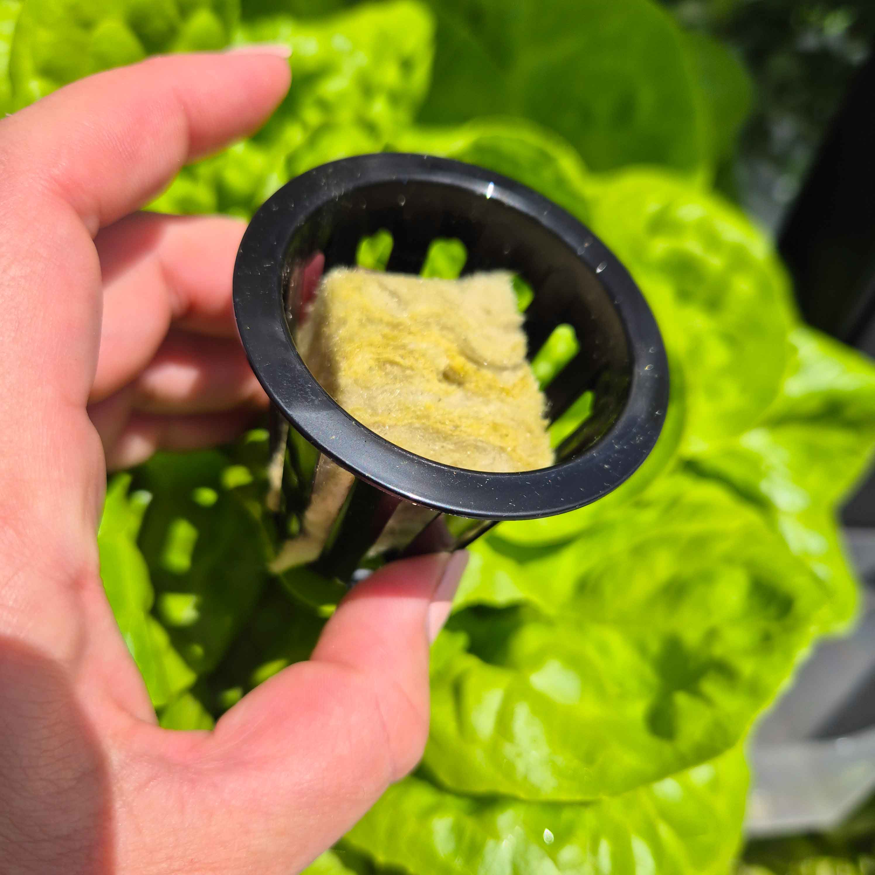 100 cubes. Place your seed or seedling into the stonewool for structural support and moisture retention. The stonewool sits inside the above Net Cups.